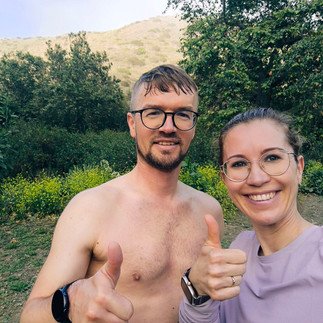 Nach der ersten Nacht ohne Jetlag -bedingte Wachphase starten André und ich mit einem Morning Hiit in der Natur 💪🥰.